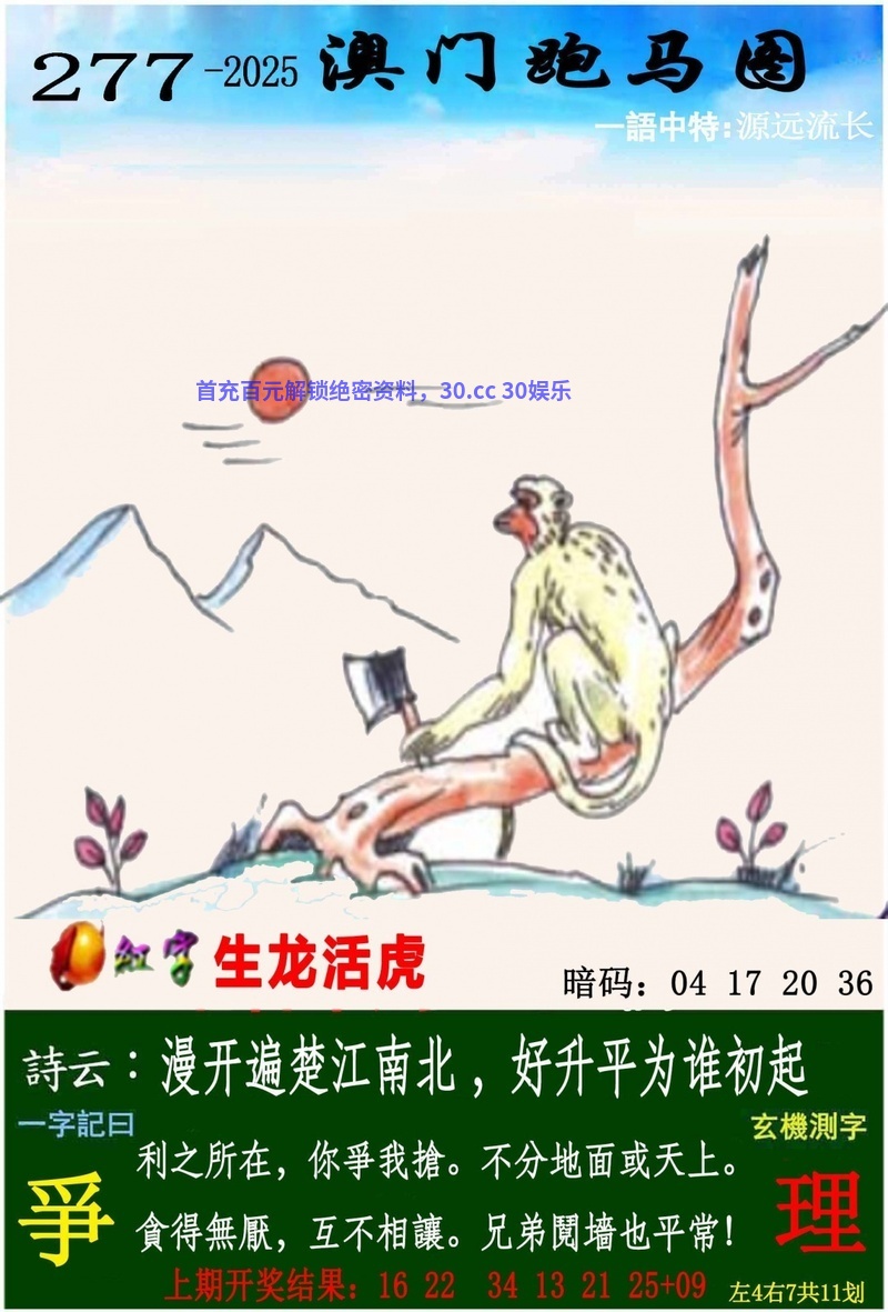 277期:【绝杀三肖】〖鸡马猴〗开:虎16中